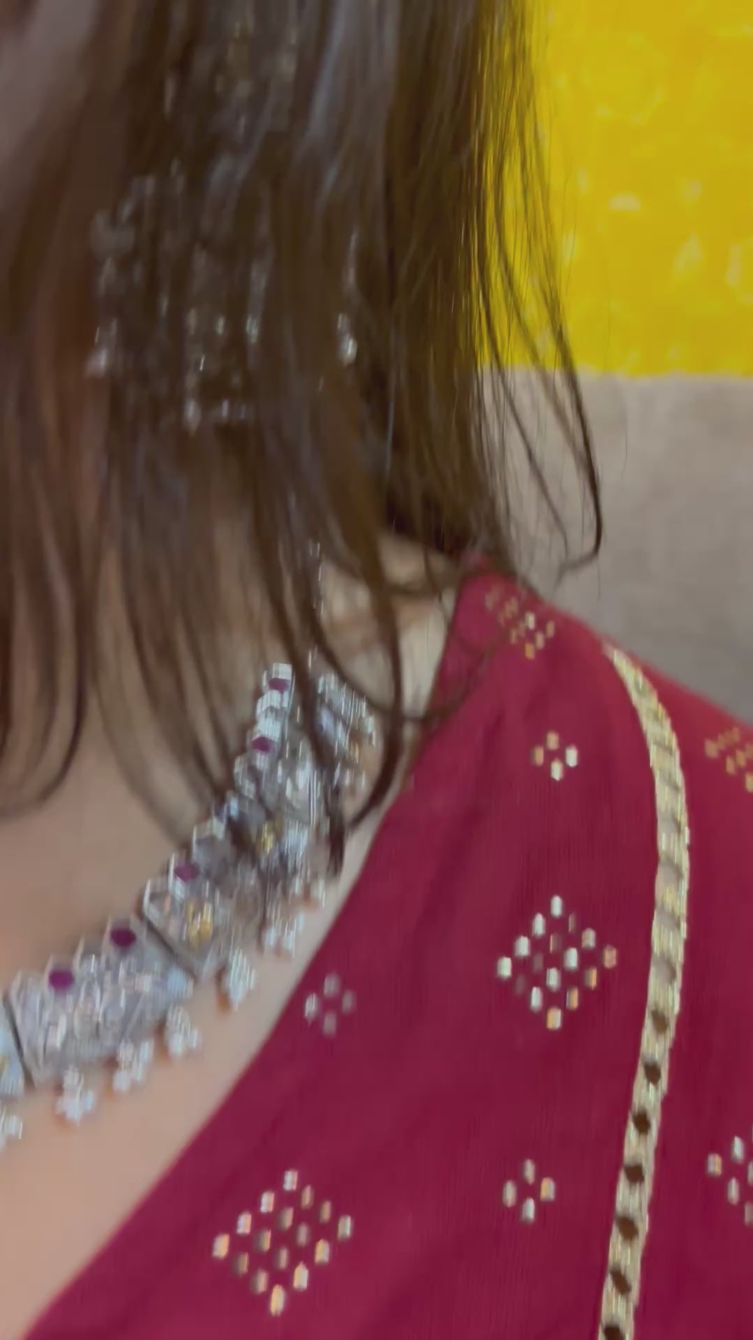 The earrings are equally striking with intricate carvings, ruby accents, and pearl hangings – perfect to complete your ethnic or wedding look. A timeless blend of craftsmanship and elegance, this set is ideal for festive occasions, weddings, and cultural celebrations.