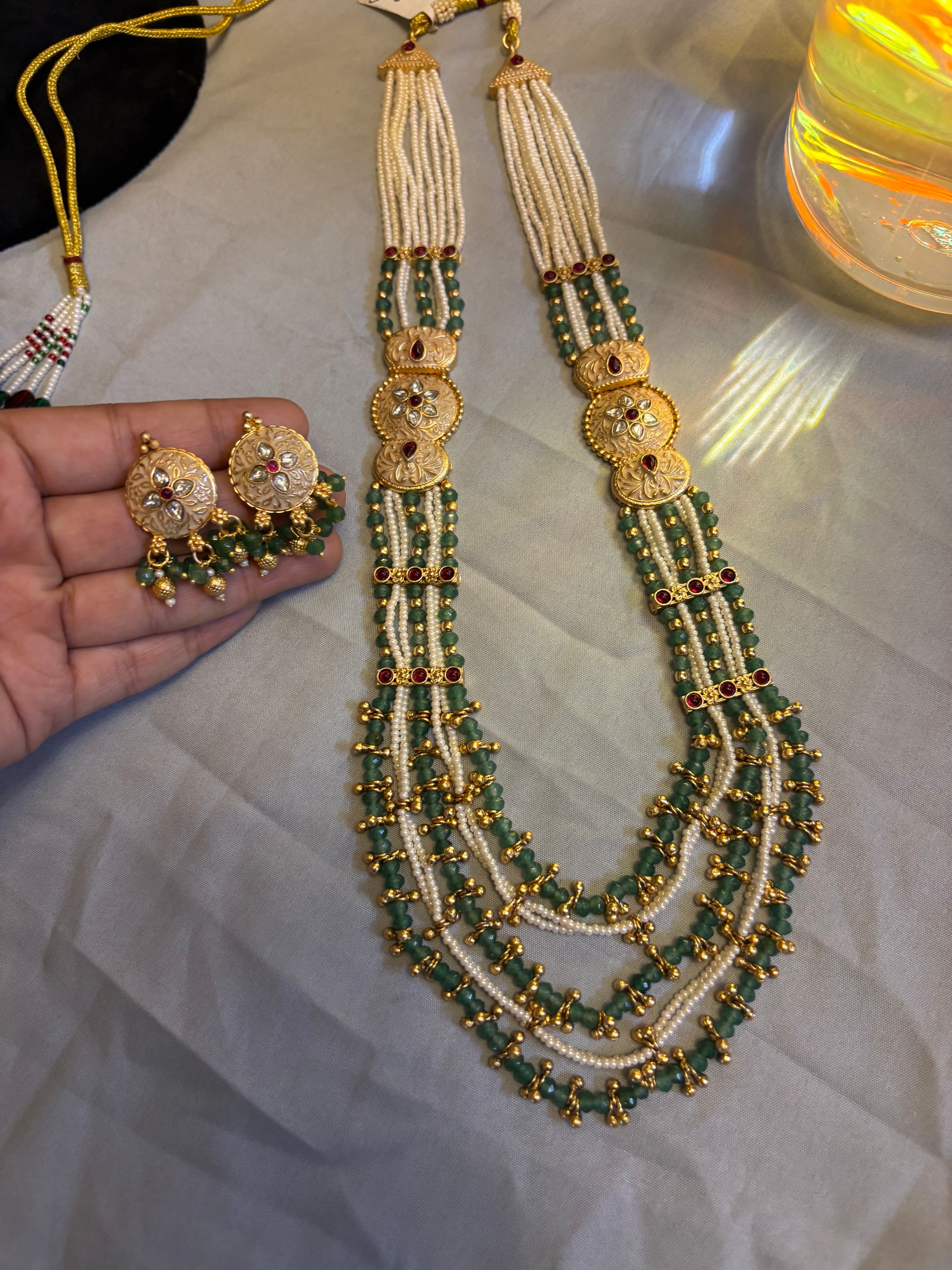 Handcrafted with premium Kundan stones, pearls, and emerald-green beads